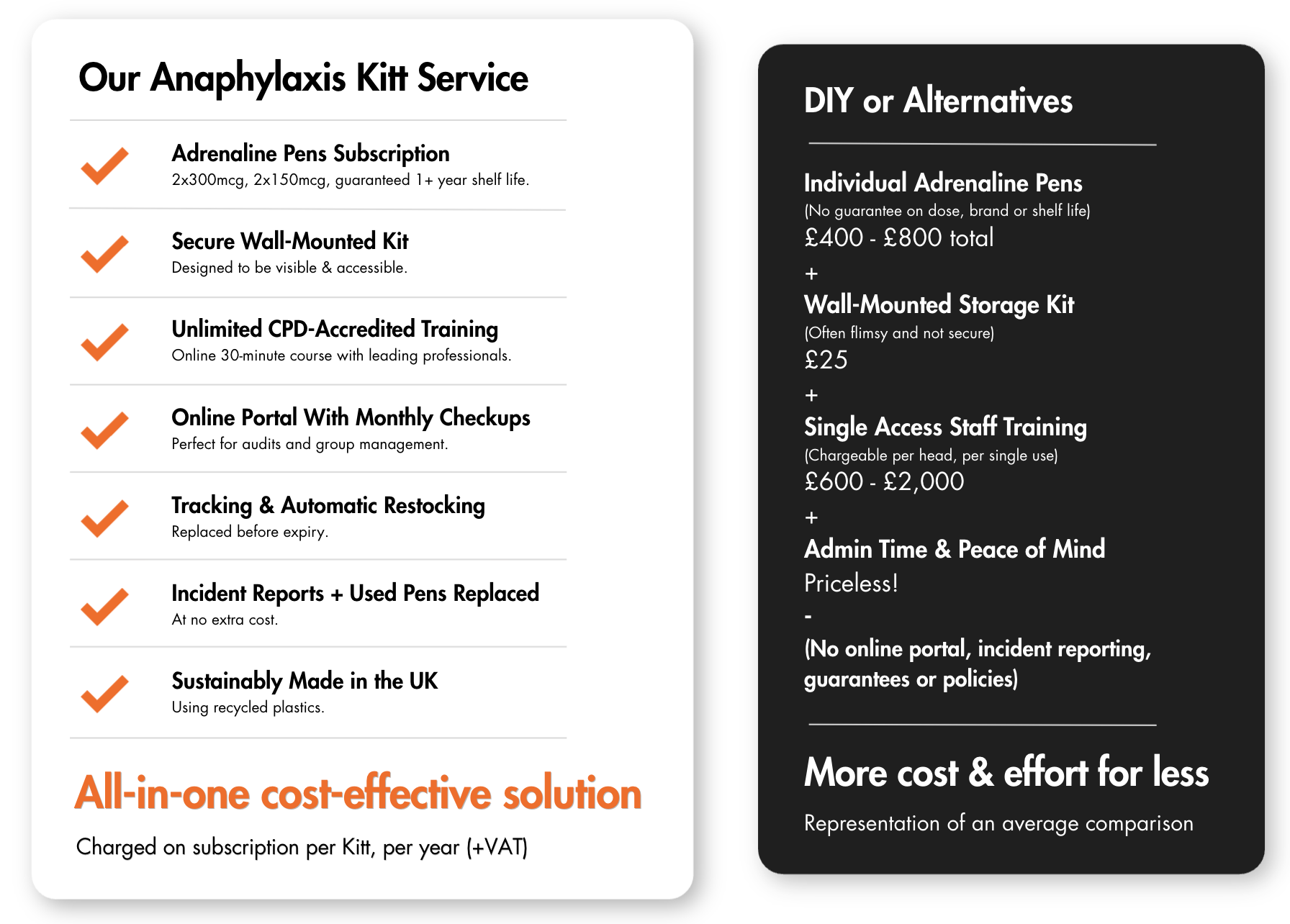 Not all anaphylaxis safety solutions are the same, and when you look at what's genuinely included, Kitt consistently represents better value than the alternatives.